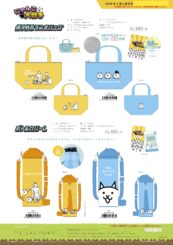 ぬいぐるみ、マスコット、がま口ポーチ、クッション、巾着、ペンケース、ランチボックス、弁当箱、ランチクロス、グラス、タンブラー、マグ、プレート、フォーク、スプーン、トートバッグ、靴下、パスケース、扇子、クリアファイル、ノート、付箋、ティッシュケース、リュック、メモ、マスキングテープ、ボールペン、ポーチ、アクセサリー、ネックレス、イヤリング、シール、スリッパ、ブランケット、時計、タオルハンカチ、マット、スマホカバー、Tシャツ、カリキュレーター、電卓、カードケース、コインパース、マルチケース、プラッシュコスチューム、スタイ、エコバッグ、ガラガラ、傘