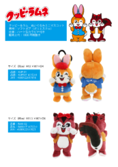 商品:ぬいぐるみ、マスコット、キーチェーン、リュック、パスポーチ、もふもふかおパスポーチ、もっちりクッション、かおポーチ、クリーナーストラップ、ポケットティッシュポーチ、ビッグペンケース、フィンガーパペットキーチェーン、キーリング、かおバッジ、ヘアゴム、かおトートバッグ、巾着、まるさんかくしかくポーチ、マグネット