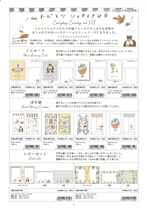 商品:シール、グリーティングカード、レターセット、ノート、メモ、ポチ袋、ふせん、付箋、レターセット、クリアファイル、ミニカード(バースデー、多目的、サンキュー)、金封、祝儀袋、グリーティングカード(ウェディング、バースデー、多目的、サンキュー、出産)、ポストカード、マスキングテープ、フォトプロップス