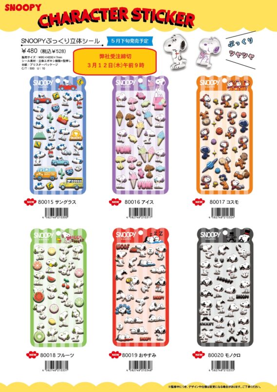 NEW!!『スヌーピー ぷっくり立体シール』(3/12〆):https://www.rivarock.com/pages/wp-content/uploads/2026/01/6444a3b981e41e0ccd78f2df88112894.pdf