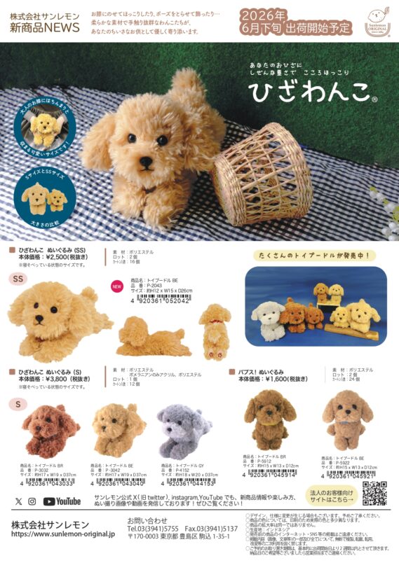 ひざたぬき、ひざきつね、ひざぱんだ、ひざかわうそ、ひざひょう、ひざおおかみ、ひざうさぎ、ひざねこ、ひざわんこ、ひざねこ温、ひざわんこ温、スコティッシュフォールド、トイプードル、柴犬、ペルシャ、ラグドール、ハチワレ、オッドアイ、ミケ、ゴールデンレトリバー、セントバーナード、パグ、ピジョンフリーゼ、チワワ、ミニチュアダックス、フラッフィーズ、fluffies、フクロウ、シマリス、ナマケモノ、ハツカネズミ、シロクマ、ライオン、ホワイトタイガー、ゾウ、カバ、レッサーパンダ、フェネック、ハリネズミ、しか、アルパカ、ひつじ、オカメインコ、ニワトリ、ヒヨコ、カエル、ペンギン、フラッフィーズレインボー、ユニコーン、ドラゴン、フェニックス、ヒョウ、パプス、PUPS!、ポメラニアン、チン、ジャックラッセルテリア、パピヨン、コーギー、キトン、Kitten、アメショー、アメリカンショートヘア、クロネコ、アビシニアン、シャム、エキゾチックブチ、白猫、Prairie Zoo、プレイリーズ―、ラピヌ、Lapinou、ミニレッキス、アンゴラ、ドワーフホト、ダッチ、ライラック、ロップイヤー、ポー、Paw、ぬいぐるみのおうち、JAPANESE SOUVENIR、にほんのおきもの、木彫りくま、たぬき信楽、いぬはりこ、招き猫、だるま、うりぼう、ハグハグレインボー、HUGHUGRAINBOW、文鳥、半魚人、ミツバチ、カモノハシ、コアラ、コフコフ、ニャーカミ、タヌモグラ、イロトリドリ、コキンチョウ、ハチドリ、オオルリ、アヒル、MIYATA KEIKO、ミヤタケイコ、デンデンキャンディ、オレオレカメレオン、ケロトラ、ワオ!キツネザル、ウォンバットさんたち、デビルさん、コアラさん、フェアリーさん、キウイさん、やわらかいさんたち、だるまさんたち