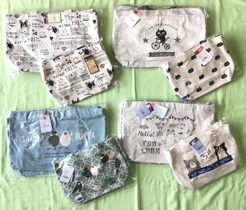 上段はファスナー付A4トート、下段はミニトートバッグです。