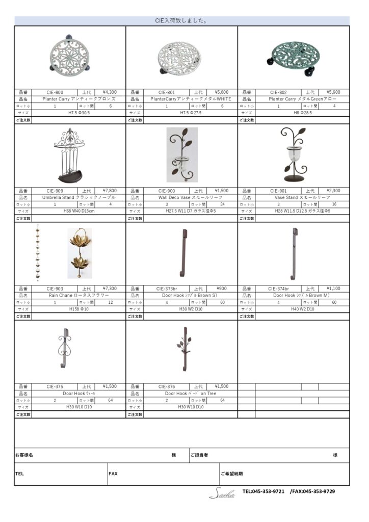 人気のCIE品番の再入荷のご案内も届きました!
