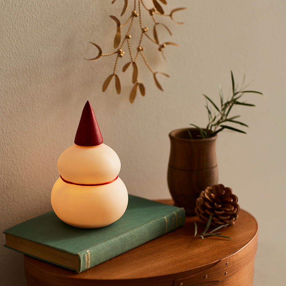 鏡餅としても使える半磁器のLEDライト雪だるま